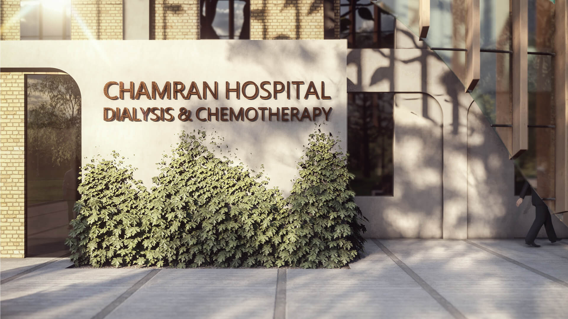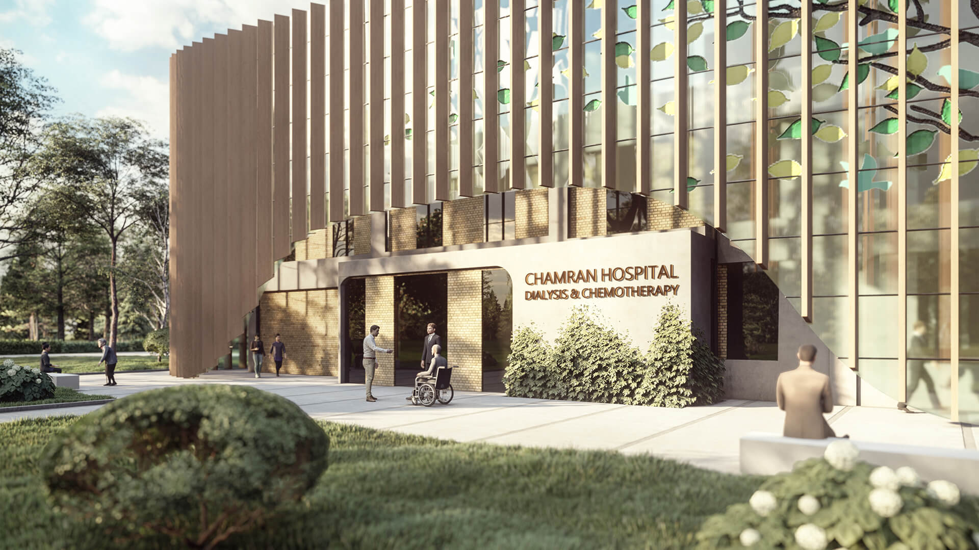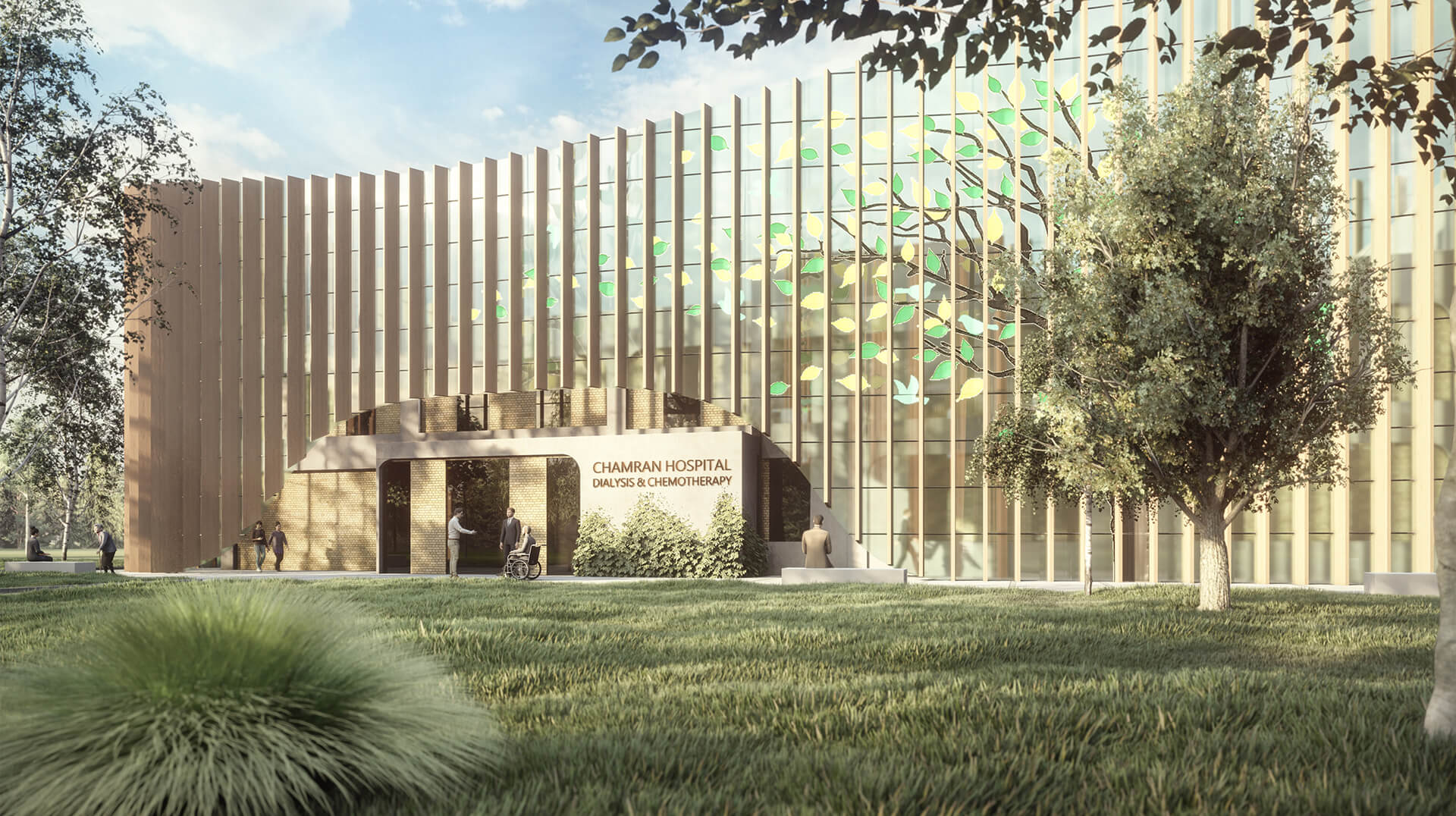 The multifunctional exterior design of the dialysis and chemotherapy wards of Chamran Hospital which has two main parts(the main body and the second skin) is derived from the project needs. On one side, masonry materials were used in the main body of this ward due to the renovation process, on the other hand, the second skin must moderate the environmental situations of the unit.