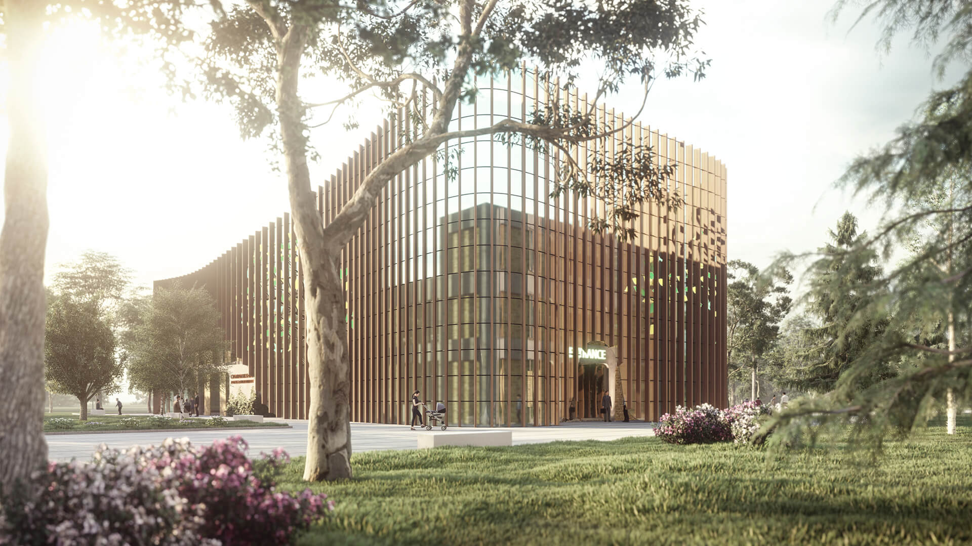 By providing an intermediate corridor consist of glass and louvers with wooden finish, the building energy consumption is going to be reduced(specification of the materials should meet the requirements of design). Moreover, users may access to the sides of the building through this corridor.