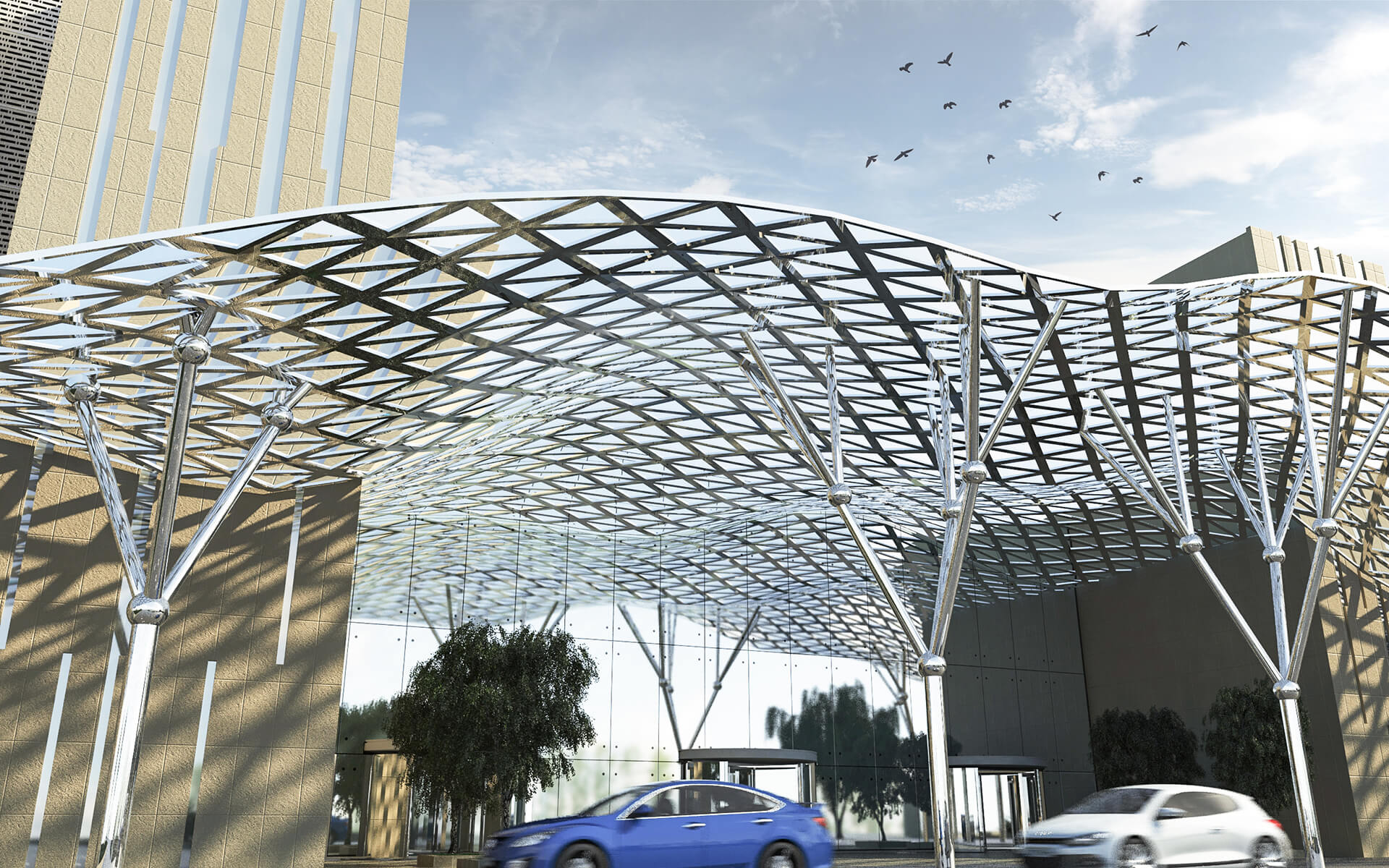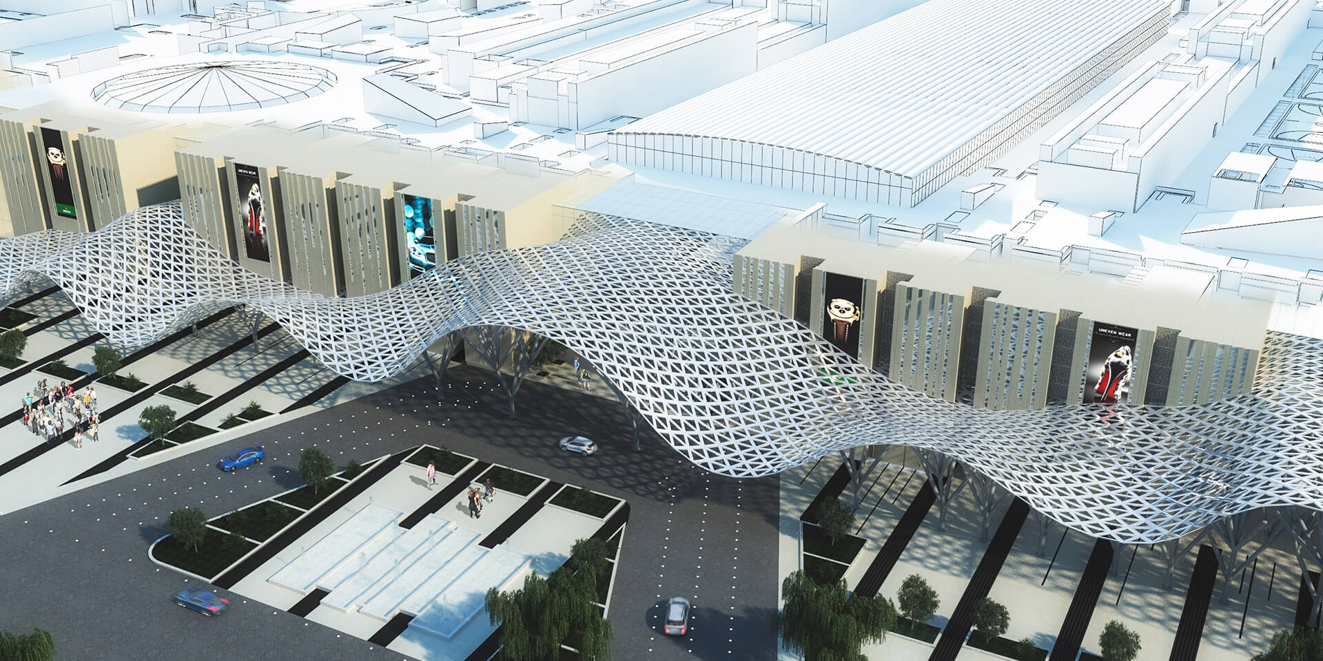 Several concepts were proposed for the northern facade canopies of the Iran Mall project to combine with its cubic solid body. Among these combinations, the ones that cover the longitudinal facade of the mall may become a favorable space for users to walk and seat protected from precipitations. The others may be a complementary space for the northern vestibules. Some proposals were completed by implementing the parametric architecture.