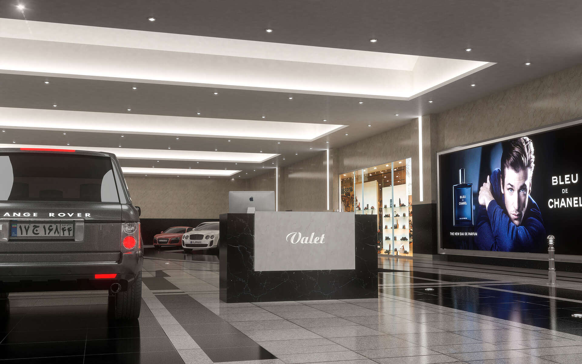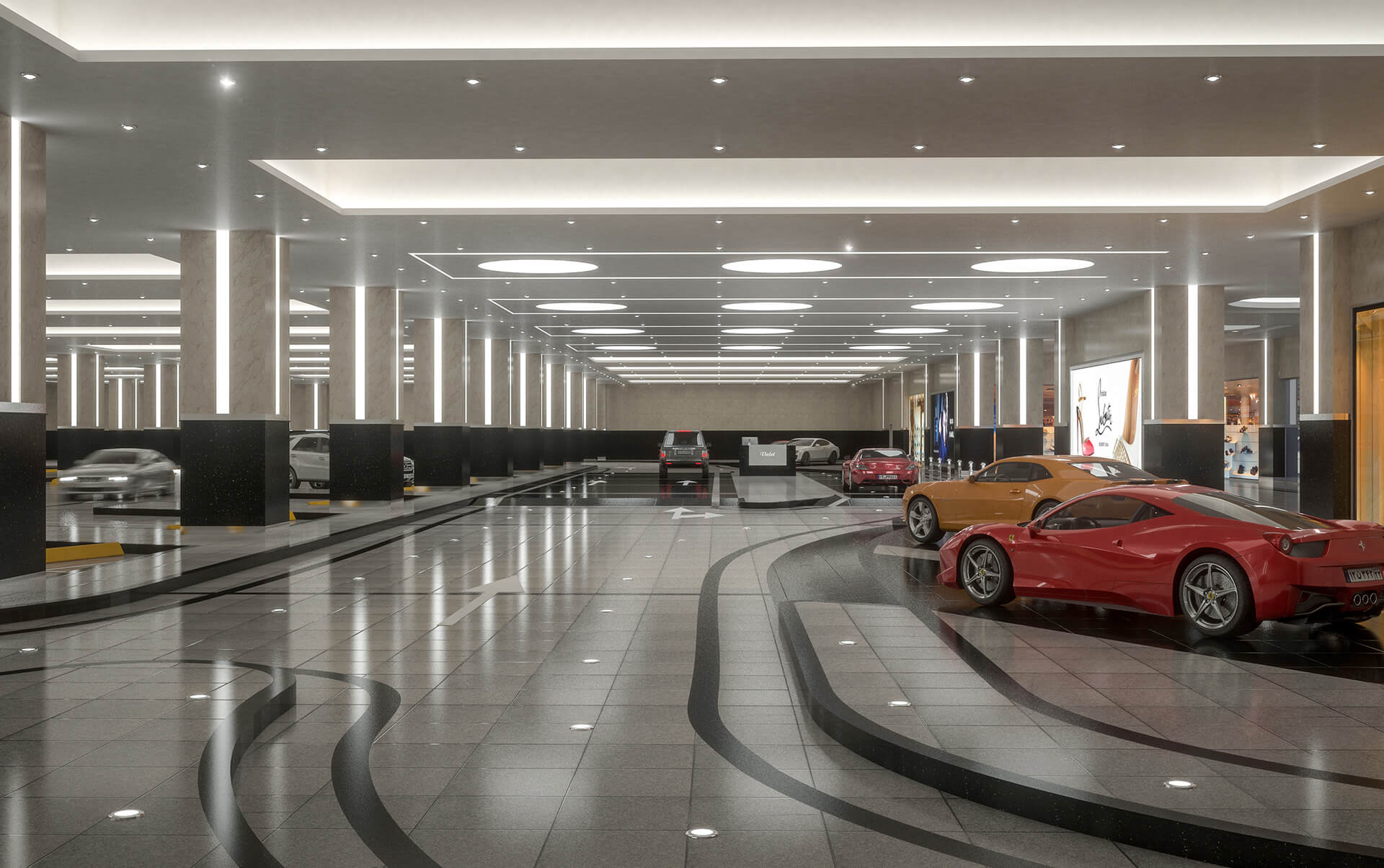 One of the most prestigious spaces in gigantic malls such as Iran Mall is the special parking space which is dedicated to valuable cars. The valet park of the Iran Mall is the main entrance of Didar Garden.